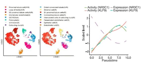 圖6 細胞群預(yù)測(左) 圖7 轉(zhuǎn)錄調(diào)控機制(右)