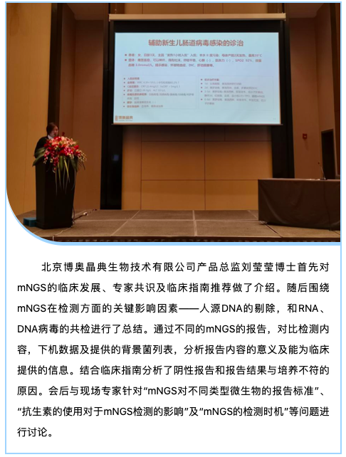 日前,福建省重癥醫(yī)學(xué)培訓(xùn)會(huì)——中國重癥醫(yī)學(xué)多學(xué)科精髓(MCCRC)培訓(xùn)班在福州召開。本次培訓(xùn)班邀請(qǐng)了省內(nèi)外知名專家圍繞重癥醫(yī)學(xué)領(lǐng)域新技術(shù)的發(fā)展等內(nèi)容進(jìn)行了專題報(bào)告,其中,廣東省人民醫(yī)院重癥醫(yī)學(xué)科黃道政博士及博奧晶典產(chǎn)品總監(jiān)劉瑩瑩博士受邀出席,并作了題為“病原宏基因組學(xué)在重癥感染應(yīng)用進(jìn)展”和“病原宏基因組學(xué)報(bào)告解讀”的專題報(bào)告,報(bào)告受到福建省醫(yī)學(xué)會(huì)重癥醫(yī)學(xué)分會(huì)主任委員、福建醫(yī)科大學(xué)附屬第一醫(yī)院ICU主任林建東教授的支持與點(diǎn)評(píng)。