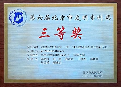 4月20日上午,京津冀促進知識產(chǎn)權(quán)運用工作會暨北京市發(fā)明專利獎頒獎大會在京舉行,博奧生物集團聯(lián)合清華大學(xué)的“染色體非整倍體(T21、T18、T13)檢測試劑盒的質(zhì)控品及其應(yīng)用”發(fā)明專利喜獲三等獎,彰顯了博奧生物在無創(chuàng)產(chǎn)前基因檢測技術(shù)上的先進優(yōu)勢。