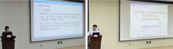 福州市衛(wèi)健委婦幼處副處長劉麗特解讀項目實施方案(左)福州市婦幼保健院耳鼻喉科主任黃長班解讀項目質(zhì)控流程(右)