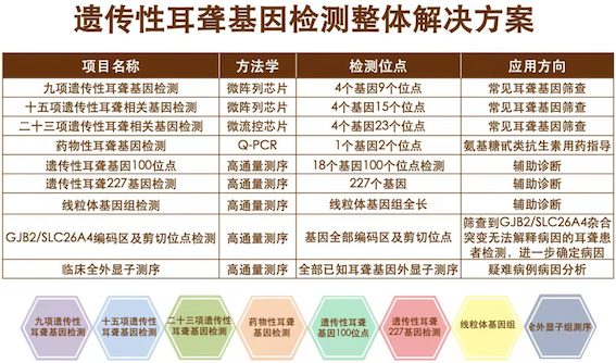 博奧晶典遺傳性耳聾相關(guān)基因檢測芯片的不斷升級迭代,有助于篩查出更多環(huán)境因素致聾基因變異的人群,盡早為其提供生活指導(dǎo),降低后天不良環(huán)境因素導(dǎo)致耳聾發(fā)生的風(fēng)險(xiǎn),早診斷、早干預(yù)、早治療。目前,博奧晶典已推出基于微陣列芯片、微流控芯片及高通量測序平臺一系列產(chǎn)品及服務(wù),包括:九項(xiàng)遺傳性耳聾基因檢測、十五項(xiàng)遺傳性耳聾基因檢測、二十三項(xiàng)遺傳性耳聾相關(guān)基因檢測、藥物性耳聾基因檢測、遺傳性耳聾基因檢測(100項(xiàng))、遺傳性耳聾基因檢測(227個(gè)基因)、線粒體基因組檢測、全外顯子組基因檢測等,為孕檢夫婦、新生兒及聽障人群提供最佳的篩查、診斷方案,同時(shí)提供專業(yè)的報(bào)告解讀及后續(xù)遺傳咨詢服務(wù),以實(shí)際行動(dòng)全面助力耳聾三級防控,減少聾兒的發(fā)生。