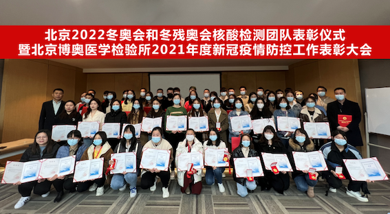3月30日上午,北京2022冬奧會和冬殘奧會核酸檢測團隊表彰儀式暨北京博奧醫(yī)學(xué)檢驗所2021年度新冠疫情防控工作表彰大會在京舉辦。共有100余名博奧檢驗的工作人員獲得冬奧會和冬殘奧會組委會發(fā)來的紀念證書,冬奧冰雪情、一起向未來!在此,感謝并點贊所有參與冬奧及冬殘奧會的博奧人!