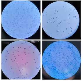 圖2 人卵巢 OCT 包埋組織(左上)、豬心臟(右上)、人腦(左下)、小鼠腎臟(右下)提核結果