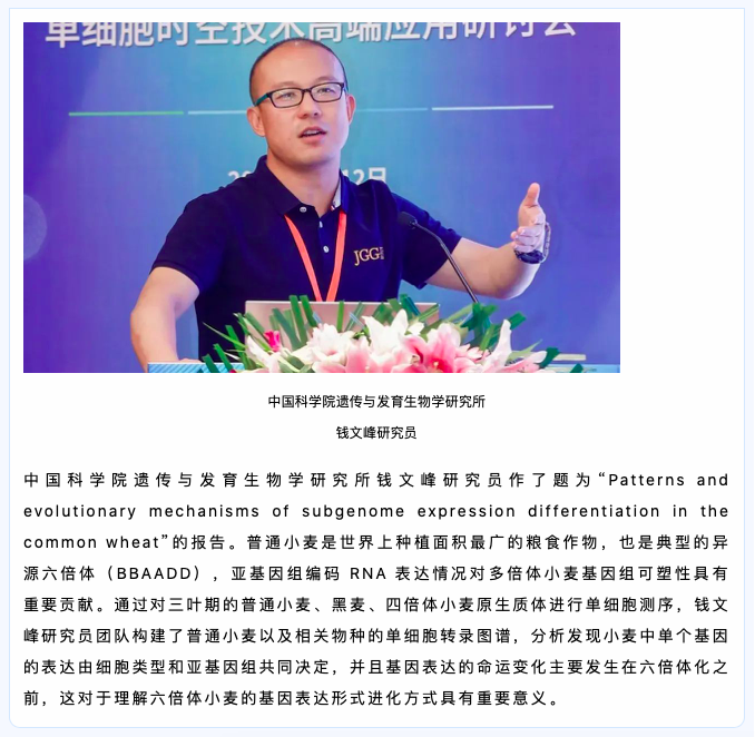 本屆會(huì)議邀請(qǐng) 8 位動(dòng)植物單細(xì)胞領(lǐng)域權(quán)威專家,圍繞細(xì)胞共生與分化、發(fā)育及代謝調(diào)控、抗病抗逆機(jī)制研究等領(lǐng)域的應(yīng)用進(jìn)行了分享和深度探討,現(xiàn)場氣氛熱烈。