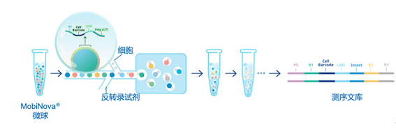MobiNova®高通量單細(xì)胞轉(zhuǎn)錄組解決方案采用液滴式微流控芯片技術(shù),利用微球-分子標(biāo)簽(barcode)進(jìn)行單細(xì)胞識別,在微流控系統(tǒng)中生成穩(wěn)定的油包水。接下來在每個油滴內(nèi),細(xì)胞裂解釋放mRNA,被微球上的分子標(biāo)簽捕獲,通過逆轉(zhuǎn)錄獲得帶條形碼的 cDNA。將cDNA 回收擴(kuò)增后進(jìn)行文庫構(gòu)建、測序,即可一次性獲得500-20000個單細(xì)胞的基因表達(dá)數(shù)據(jù),從而實(shí)現(xiàn)在單細(xì)胞水平進(jìn)行表達(dá)測序的目的??蔀榭茖W(xué)研究、疾病診斷和藥物開發(fā)等領(lǐng)域提供精度高、通量大、速度快、體積小的高性價比研究工具。